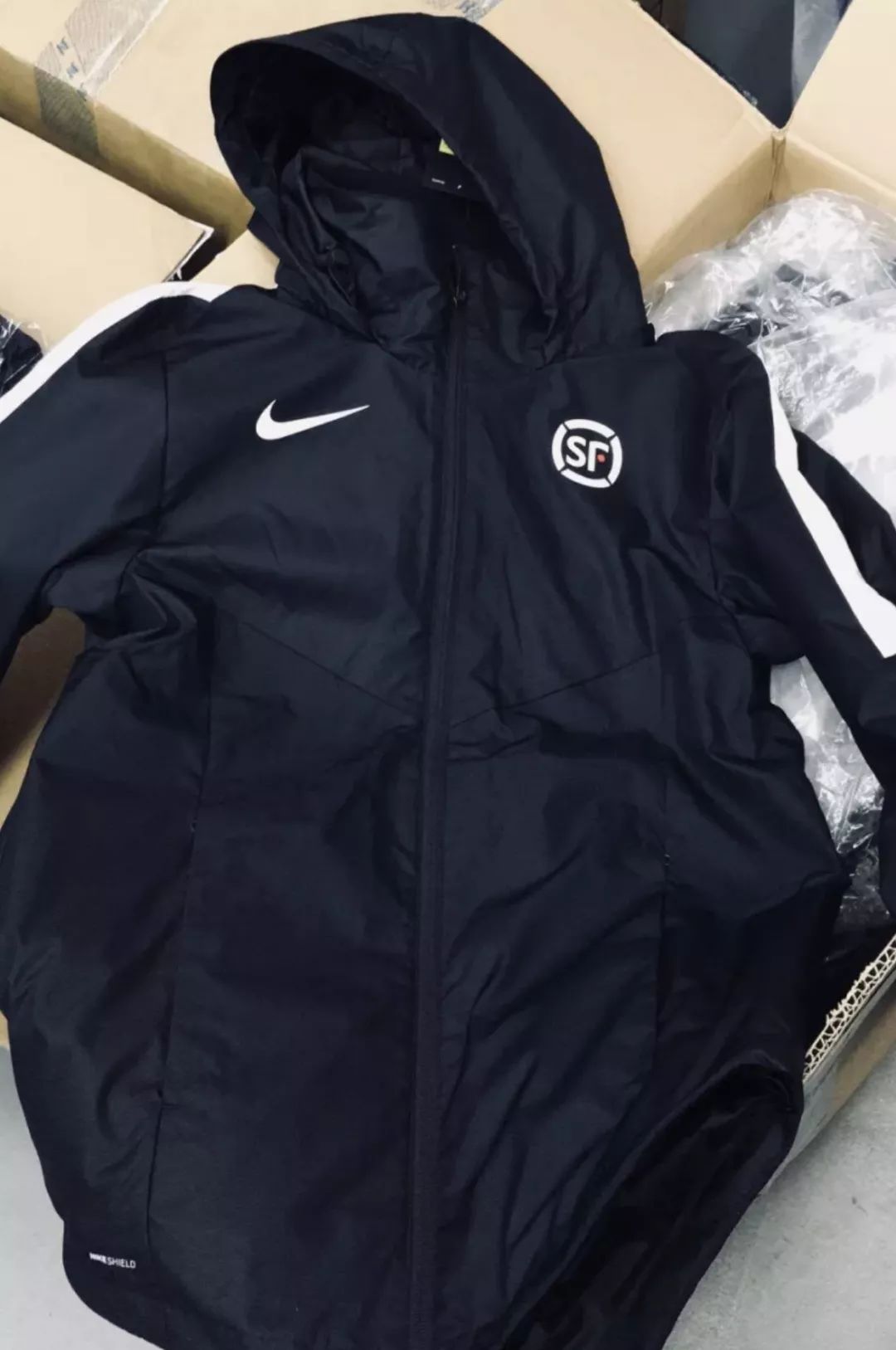 这件黑色进行渲染的顺丰工服,在胸口左侧印有 Nike Swoosh,右侧则印有顺丰 Logo!而衣服款式则是 Nike 的 SHIELD 系列,是为恶劣的天气打造的,具有防风、防泼水、以及轻量化透气功能!