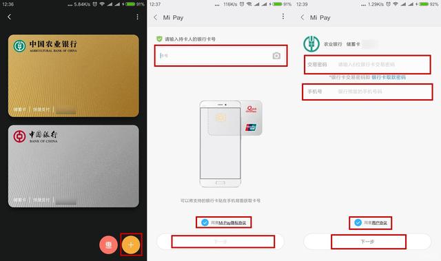 这也是小米手机NFC功能当中比较常用的一个功能,手机是我们基本都会携带在身上的,但是不一定会随身携带银行卡。我们在各大商场购物时,将手机近距离的放在POS机前,就能够进行支付,方便快捷。开启方法:小米钱包--银行卡--添加银行卡--输入卡号--填写交易密码及手机号。