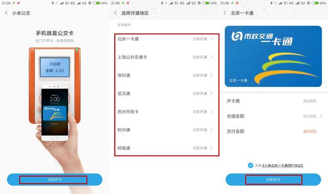 首先小米手机的NFC最常用的功能,当然是刷公交卡了,因为公交卡其实就是一块NFC芯片,因此搭载NFC功能的手机当然也能够当公交卡来使用。小米手机的公交卡目前支持北京、上海、广东、杭州等十个城市。在这些城市中我们即可轻松利用小米手机刷公交卡。开启方法:小米钱包--公交卡--立即开卡--选择开通地区--立即支付。