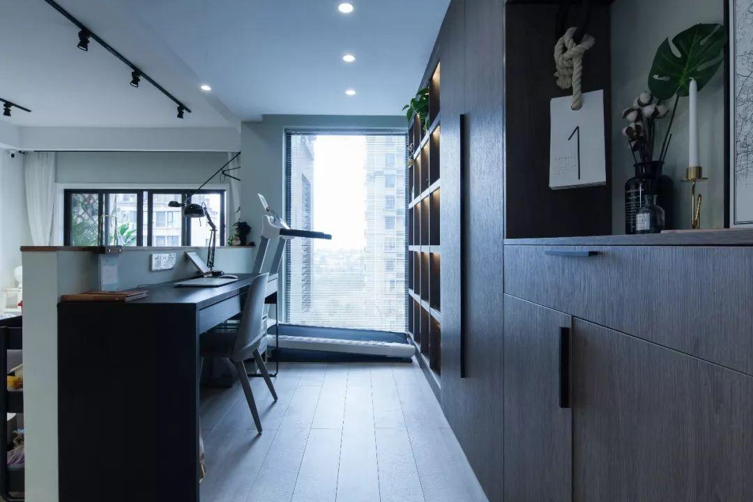 一眼基本上能够看遍全屋。在书房跑步机上边跑步边看电视,特别有动力。虽然隐私够不上,但是动静分离还是做到了。家庭公共区交流无障碍,开放式厨房一生推。