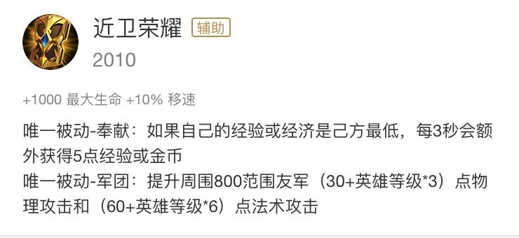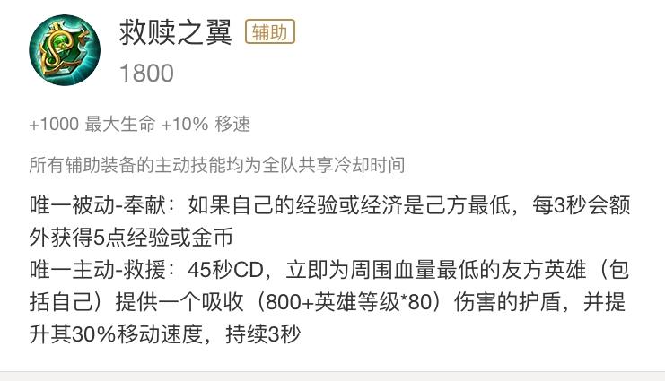 这件辅助装备在游戏中是较为常见的意见装备的,但是这件装备没有主动效果只有被动效果,同时由于其被动效果跟自身等级有关,因此不建议作为第一件装备去出,这件装备在前期的性价比很低,合适中后期打团频繁的时间出。