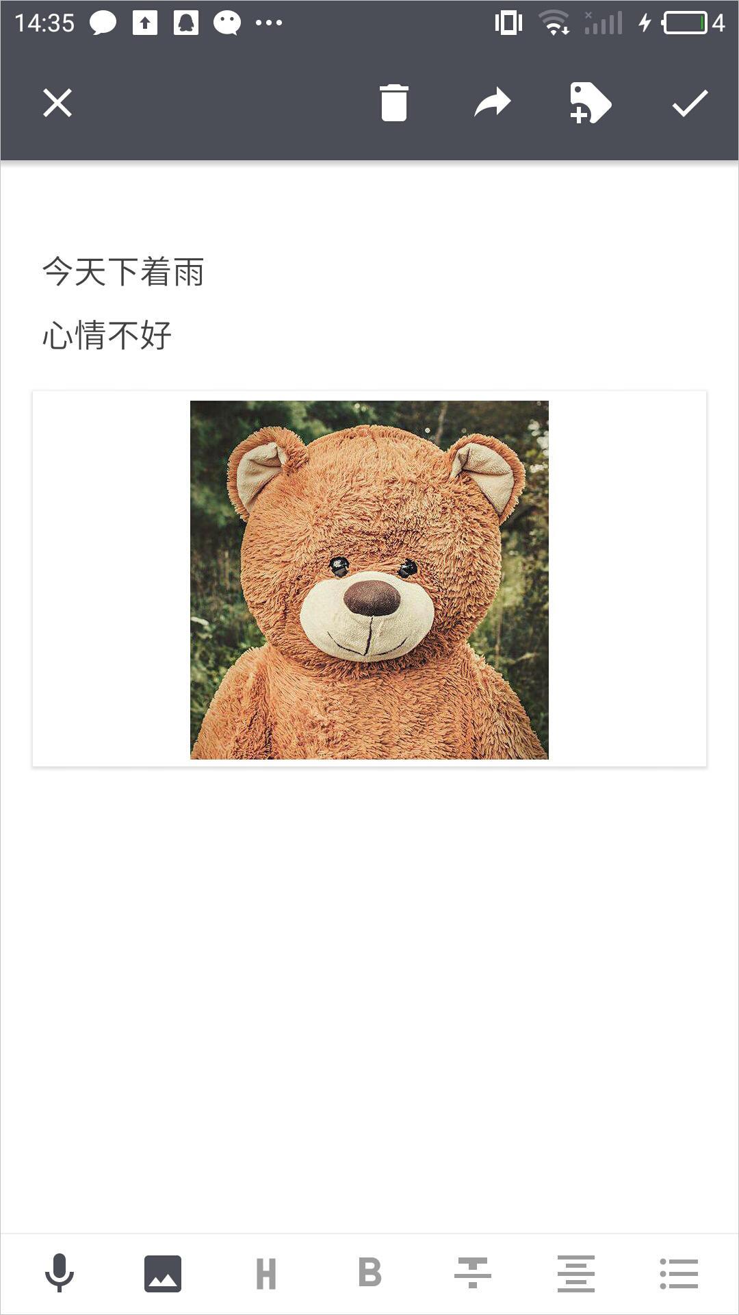 针对于文本的编辑,提供了标题的样式,以及加粗,划线文字,剧中显示以及列表形式。虽然不是特别多,但是对于我们这种随笔记录的小清新来说是足够的。