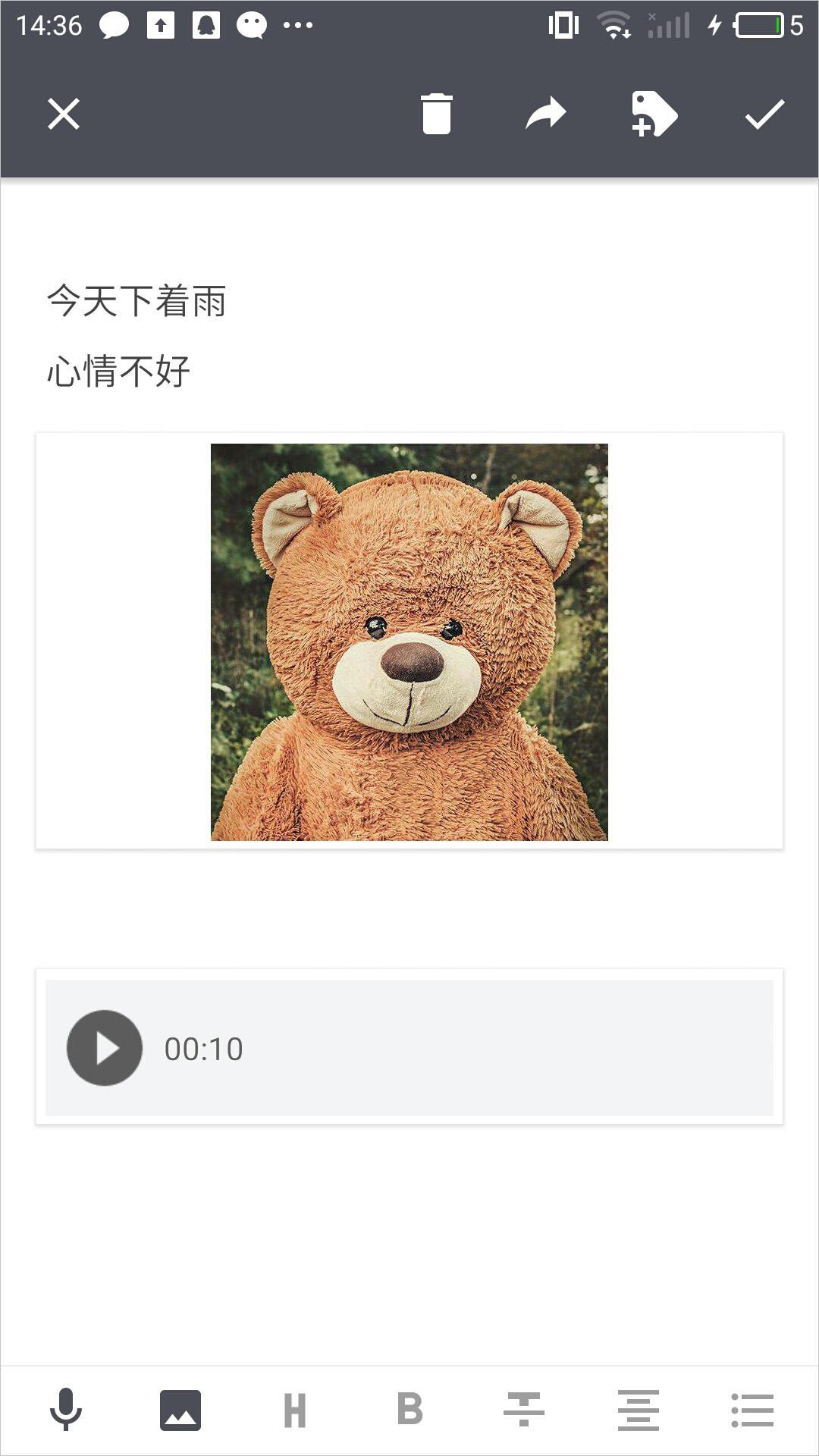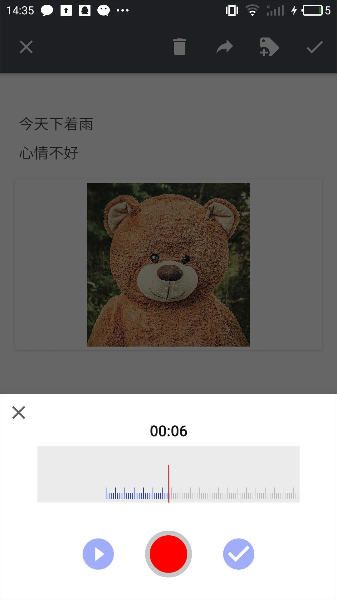 语音的添加能够说是这款应用的一大亮点。语音输入的过程中,只要启动,就会自动开始录入。录入完毕还能够预览收听,对于众多的懒人来说,语音录入及时而又准确,会让你的记录变得更加丰富。