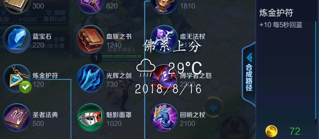 很多玩法师的朋友,经常会碰到死活不给蓝的打野,有的打野是真到缺蓝,露娜、赵云等,有的打野是真的不想给你蓝。没惩击又抢不过自己打野,自己小脆皮又不敢去抢对面的。或者说你玩的英雄挺缺蓝的,但是又不合适拿蓝,那怎么办?那你能够试试出这个炼金护符。