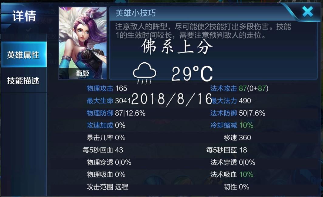 (注:1级甄姬最*法大**力490,每5秒回蓝18)