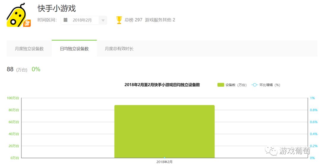 艾瑞数据记录的趋势变化也同样吻合,到今年2月,快手小游戏的日均独立设备为88万,同桌游戏app的数据则超过了100万。