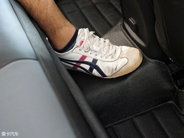 保持前排座椅位置不变,体验者来到后排。头部空间剩余两指,腿部空间剩余两拳以上。