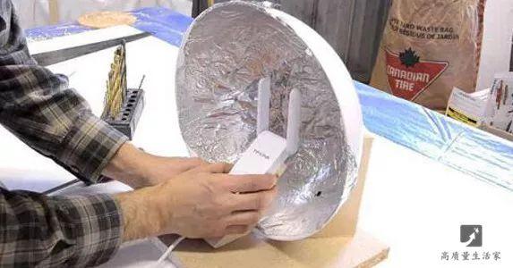 准备一只大碗,用锡箔纸包在碗外,再把路由器置于其中,聚拢信号的效果超厉害。