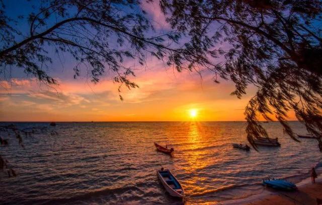 Otres Beach的海岸线绵延流长,待夕阳徐徐下落之时,火红的流云点燃整个天际,轰轰烈烈地从天边烧至眼前,留下漫天红霞,动人心魄。