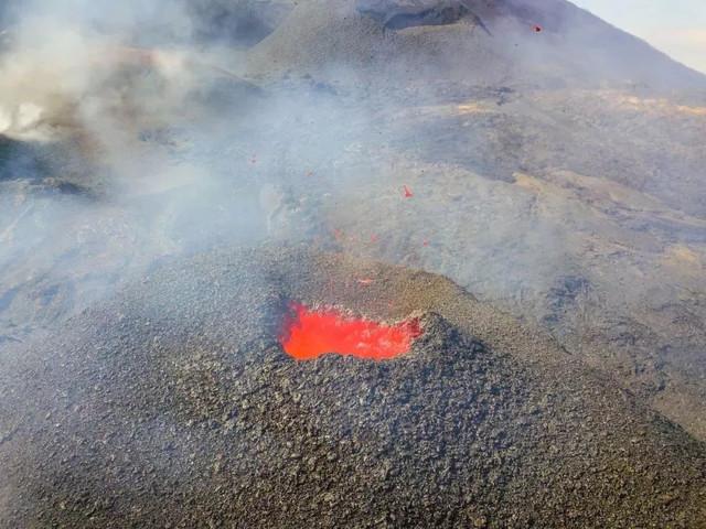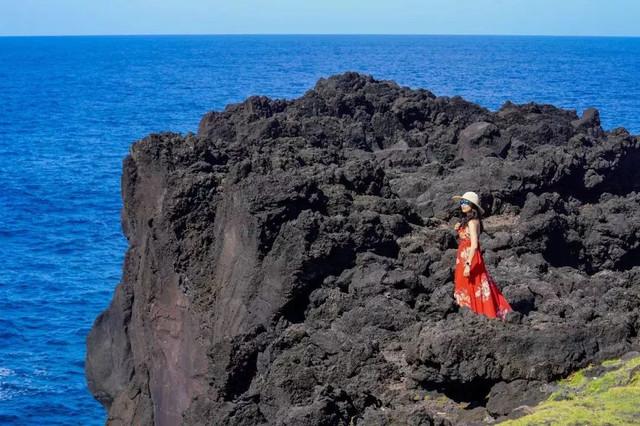 这里还有一座正在喷发的活火山,冒着火光的火山口、大片荒芜的黑色熔岩地貌,以及由火山土壤所滋养的各种特有的动植物。