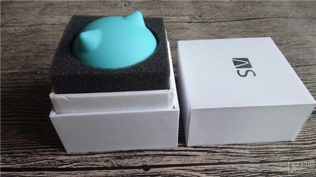 充电舱的外形是一个看上去很萌的猫头,尖尖的耳朵、咪成一条缝的眼睛还会在电充满后发光,为了打开盒子的方便,只有把猫嘴设计成一条豁口了,产品设计巧妙的利用了猫头圆的外形,下半部较重,做成了“不倒翁”。既是耳机的充电舱和收纳盒,又是一个摆件和玩具。
