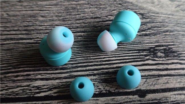 AS 不倒翁真无线音乐耳机连同耳机上自带的共计两副硅胶耳塞,材质是医疗级硅胶,耳机上和备用的颜色有所不同,耳机上的耳塞是白、蓝、灰、红不规则的彩色,而备用的是一副纯蓝色的耳塞,我还是最喜欢耳机上的这一副,把出音管和耳机头用颜色分开,很有层次感。