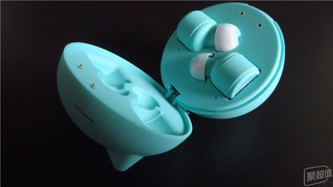打开充电舱,耳机嵌在上、下盒体的模槽里。