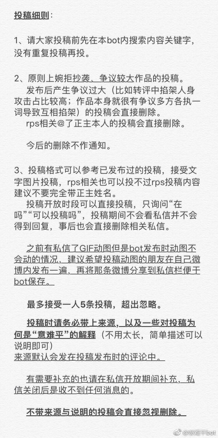 假料 bot 和意难平 bot 还定下了看起来挺严格的投稿要求。