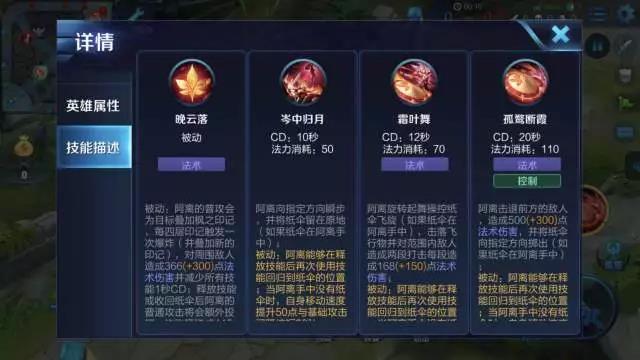 一技能的释放技巧在于斜放或者横放,不要直来直去的放,否则容易被控制(如果敌方在逃跑且确定不会被秒能够直向前),至于是斜向前还是斜向后,主要看对方英雄状态,如果对方在撤退就斜向前。