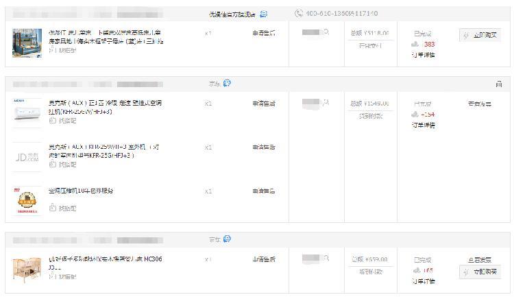 蔡霞给上游新闻记者展示了2012年至今的京东账单,从最初购买的iphone4s到后来购买的抽油烟机、空调、浴缸和婴儿床,蔡霞的网购物品确实有些不同寻常。