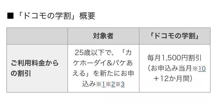 docomo也是每月1500日元的学割,优惠只有一年。