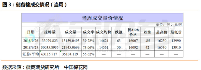 目前期货价格较现货大幅贴水,注册热潮已经消退,但长久累积的仓单量依然给期货市场带来重大压力。截至CF809合约最后交割日,郑商所已注册仓单加有效预报11081张,而目前郑商所注册仓单加有效预报依然高达10571张。郑商所棉花交割细则规定,N年生产的棉花注册的标准仓单,有效期至N+2年3月的最后一个交易日,标准仓单到期日前未办理注销手续的交易所可在到期日将其注销。截至2019年3月12日,2017年生产棉花注册的仓单面临被迫注销风险,现货市场上,10月份新花将大量上市,预期国内现货供应充足,价格不会有大幅上涨,棉花加工企业接仓单的意愿偏弱,因此仓单的消化途径将大概率依靠降低自身价格。9月27日,现货方面消息,河北星宇纺织原料有限公司3128级手摘棉报价15250元/吨(2017年1月入库),市场急于抛售2017年入库棉花的情绪可见一斑。
