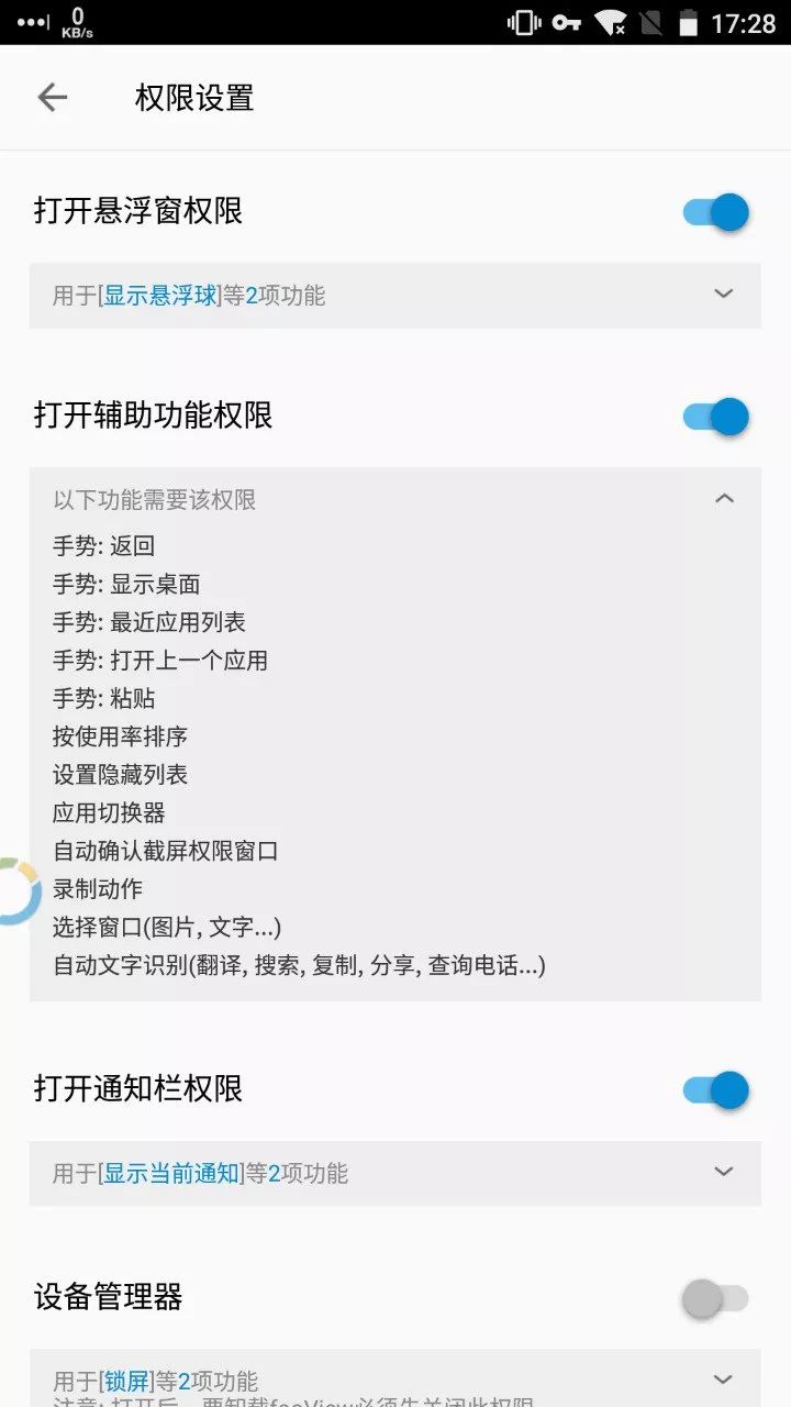 其中,悬浮球的部分手势操作、排序、应用切换、文字识别等功能需要依靠辅助功能才能启用。FooView 悬浮球是通过无障碍服务执行返回以及回到桌面等操作。因为自定义按键也是无障碍服务的另一大用处,能实现类似功能应用有我派介绍过的 Button Mapper,甚至在三星手机上你也能够自定义某些按键,比如,三星上的 Bixby 键。