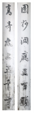 此联挂于天一阁楼下前廊柱,清代桐城派传人姚伯昂撰句,著名古建筑学家、园林艺术家陈从周书。意思是收藏华夏典籍的天一阁足以千古永存,数点神州藏书林林总总此当为第一家。此联前后落款甚长,记述了此联两次丢失又两次重写的故事。
