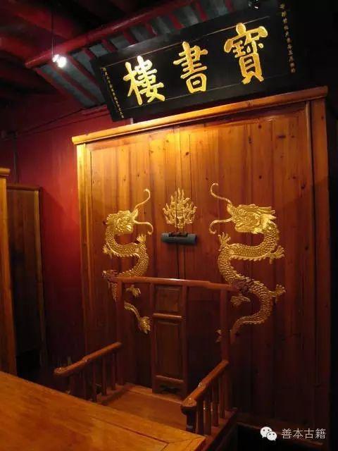 “宝书楼”匾额悬挂于天一阁楼上中堂上方正中,明代隆庆五年(1571)宁波太守王原相所题,是天一阁内现存最早的匾额。“宝书”这里既可视为偏正短语,即宝为形容词,也可视为动宾短语,宝字名词动用,即宝其书、以书为宝。此匾下为藏书主间,用五只大橱隔开,即“天一”,楼下分六间,即“地六”,此正符合“天一生水”、“地六成之”、“以水克火”的理念。