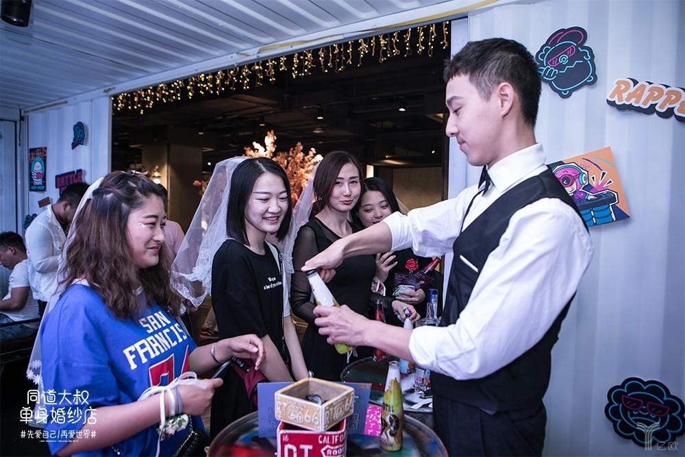 这其中,也蕴含了一些与女性天然接近的IP的机会,亲女性IP+女性产品的跨界,或许能有不一样的她经济效益。比如5月24日-5月25日,知名星座IP同道大叔在北京开了全国首家以“单身婚纱”为主题的快闪店,直击女性市场。