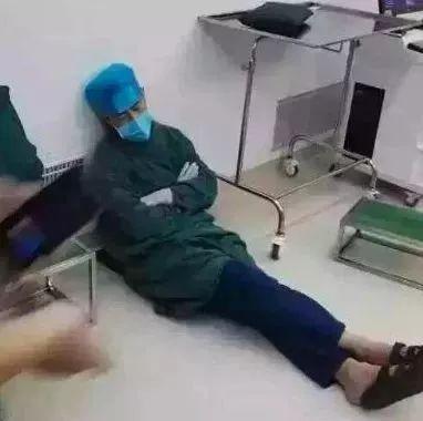 △河南洛阳市中心医院心外科主任陈兴彭,连续工作了23小时,最终圆满完成了手术。陈兴彭累得浑身是汗、躺在手术室地板上就地休息几分钟。(图自新民网)