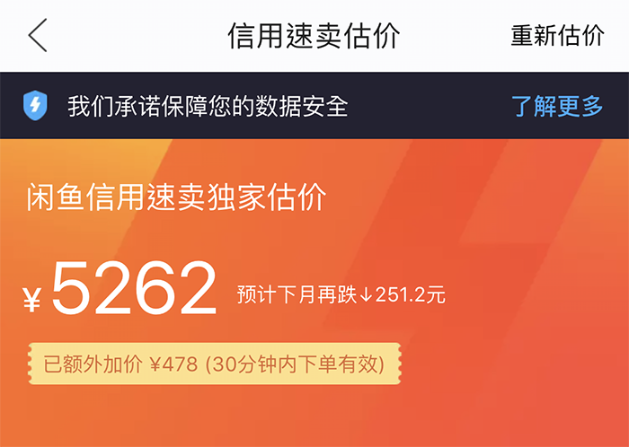 再来看看闲鱼上二手iPhone X报价,价格为5262元,之所以这么高,这是因为闲鱼额外加价策略,这里价格提升了478元,刨除掉这部分补贴,基本上和爱回收是差不多的。