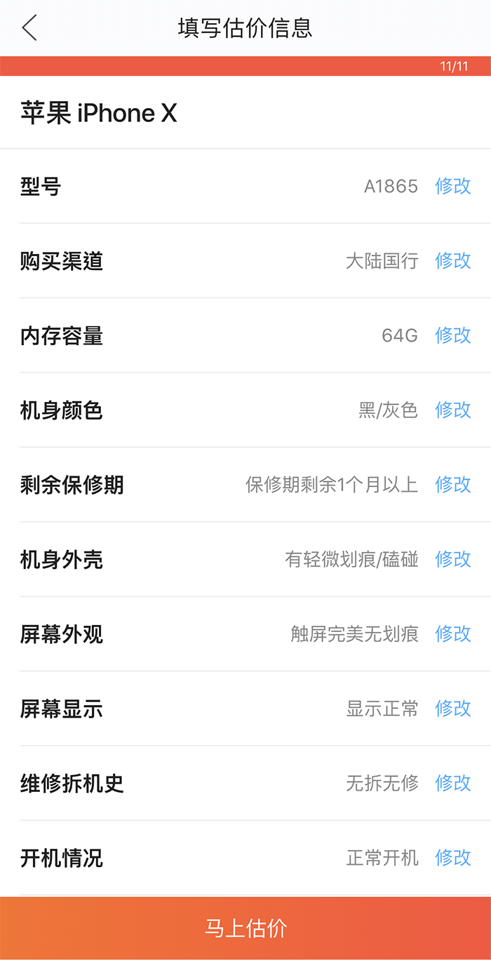 我们找到国内最大的二手数码产品回收企业“爱回收”,看看它是怎么报价的。由于iPhone X用了一段时间,有使用痕迹很正常,就以正常使用状态填写估价信息,64GB、轻微刮痕、屏幕完好、无ID锁、其余一切完好作为指标。