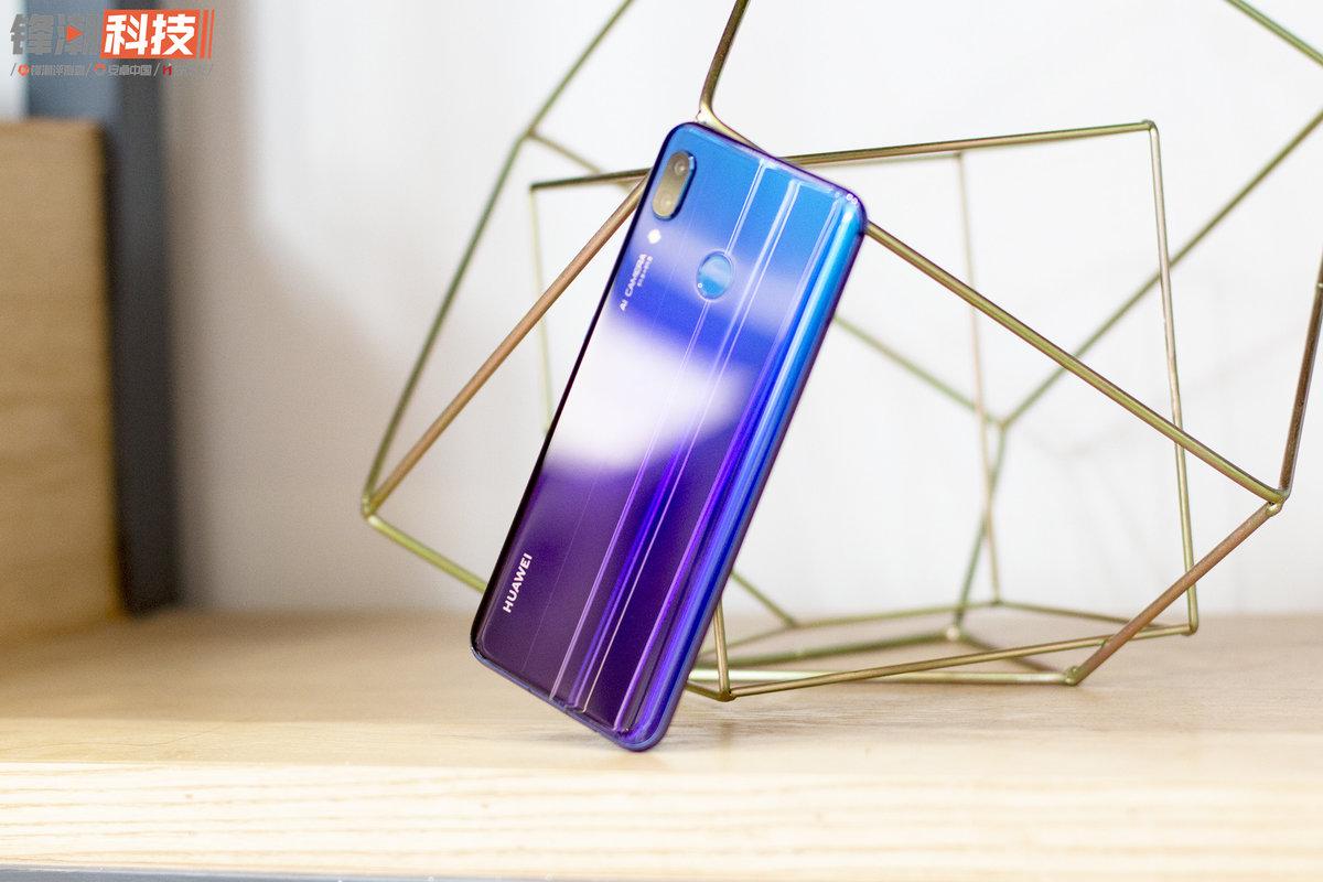 小安收到的是蓝楹紫版本,背部在不同角度下,能够形成一种“由蓝变紫”的视觉感受。而当这个颜色与背部设计搭配后,却与华为P20系列的极光色有些类似。不过相较于前者,华为nova 3在色彩使用上显得更年轻大胆一些。另外机身线条方面,后者也圆润了不少。