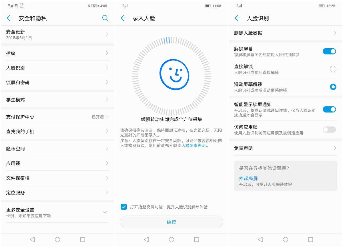 前文提到过,华为nova 3在“刘海”内加入更多的器件,而在这个基础上,华为在功能上带来了面容支付功能。但由于目前官方还未推送支持的固件,所以面容支付功能在本次的评测中,并没有办法通过实际的测试去检验实际效率。