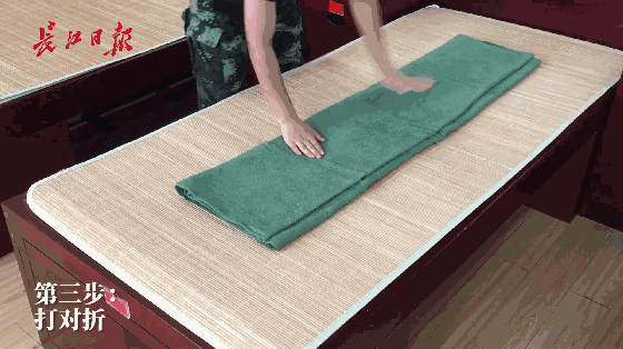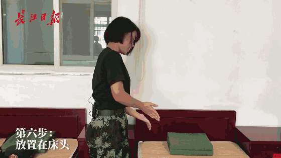 长江日报记者查阅了2018年5月1日起施行的《中国人民解放军内务条令(试行)》,其中明确规定“床铺应当铺垫整齐”,就连如何叠被子、如何摆被子都有明晰的标准:被子竖叠3折,横叠4折,叠口朝前,置于床铺一端中央。战备包(枕头)通常放在被子上层,也能够放于被子一侧或者床头柜(床下柜)内。