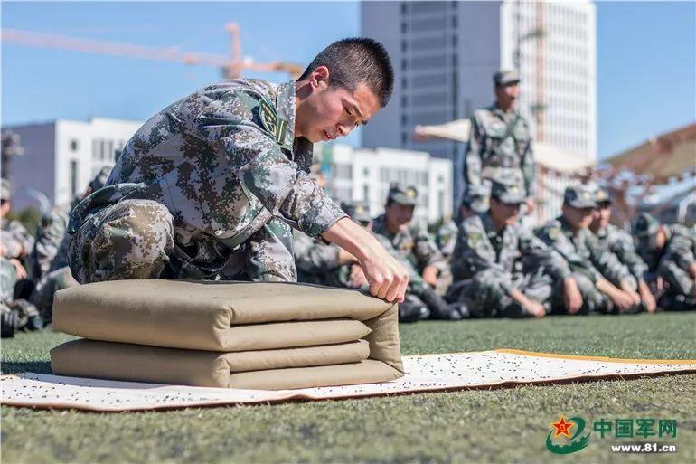 叠被子也有大场面,*警武**新兵“豆腐块”比拼 来源:中国军网