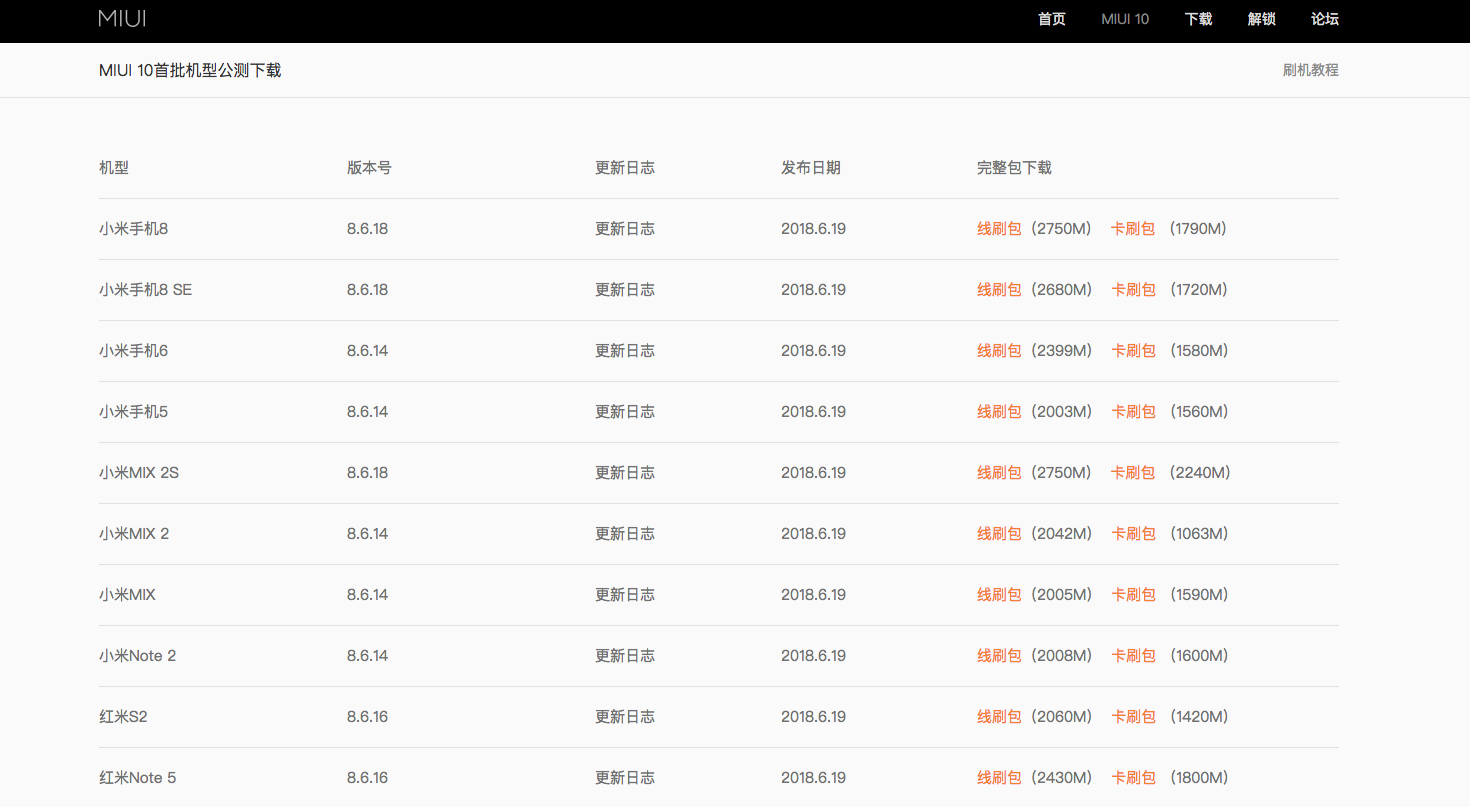 首先是一台支持首批开发版公测的小米手机,根据 MIUI 官网给出的名单,目前支持 MIUI 10 首批开发版的机型有,小米 8、小米 8 SE、小米手机 6、小米手机 5、小米 MIX 2S、小米 MIX 2、小米 MIX、小米 Note 2、红米 S2 以及红米 Note 5。(小米 6X 暂停了此次公测,故无法刷机)