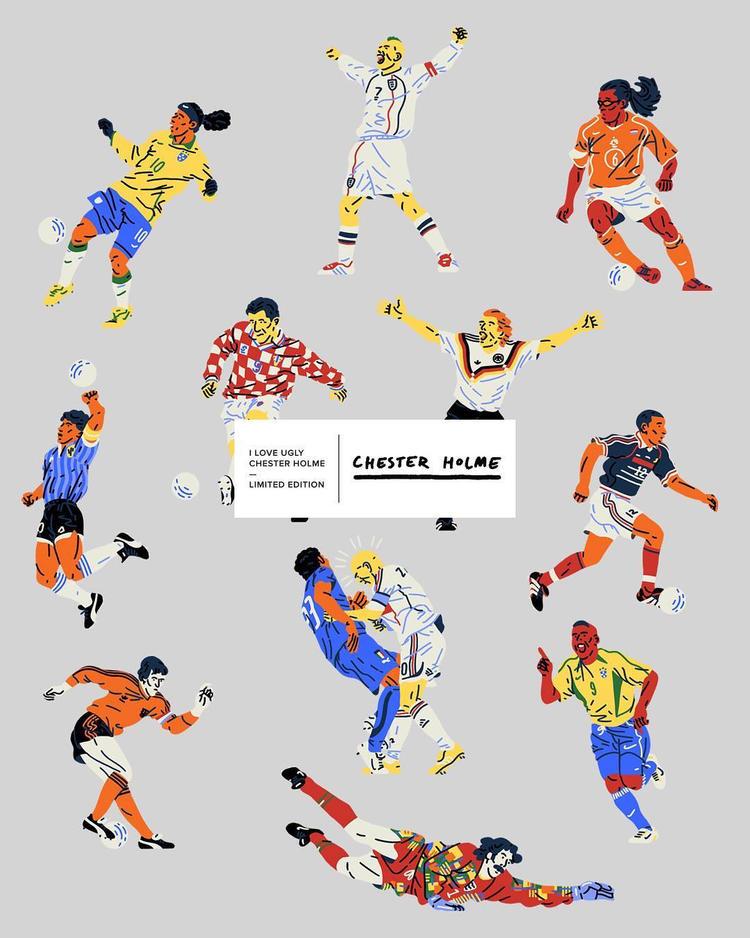 该系列找来插画师 Chester Holme 合作,用绘画致敬传奇球星,如马拉多纳、罗纳尔多、齐达内、贝克汉姆等,将于 7 月 12 日于品牌官网正式发售。