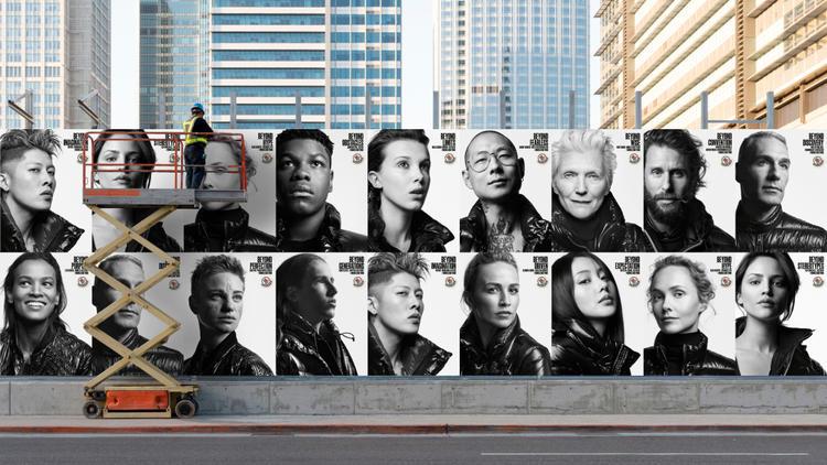 这一系列黑白人物肖像以“MonclerBeyond”为主题,由 Craig McDean 拍摄。19 人包括:英国演员 John Boyega、 中国演员张天爱、布鲁克林艺术家 Conie Vallese、法国自由潜水运动员 Guillaume Nery、吉尼斯纪录中最年轻的环游世界旅行者 Lexie Alford、日本歌手 Miyavi(石原贵雅)、墨西哥演员 Eiza Gonzalez、意大利宇航员 Walter Villadei、西班牙摩特赛车手 Carmen Jorda、环保运动者 Xiuhtezcatl Martinez、英国冒险家 David de Rothschild、俄罗斯网红 Olga Karput、美籍韩裔主厨 Danny Bowien、斯哈歌手 Sheck Wes、模特 Liya Kebede,以及 LGBTQ 运动者 Gus Kenworthy。