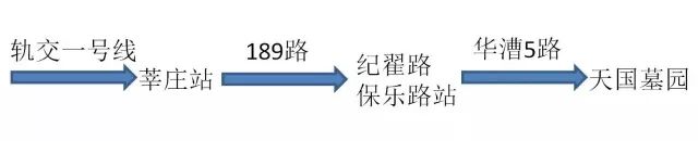 乘坐地铁1号线至莘庄站,在北出口换乘189路(原莘纪线)到纪翟路保乐路站下,换乘华漕5路到北青公路林家桥站,步行2分钟即到墓园。