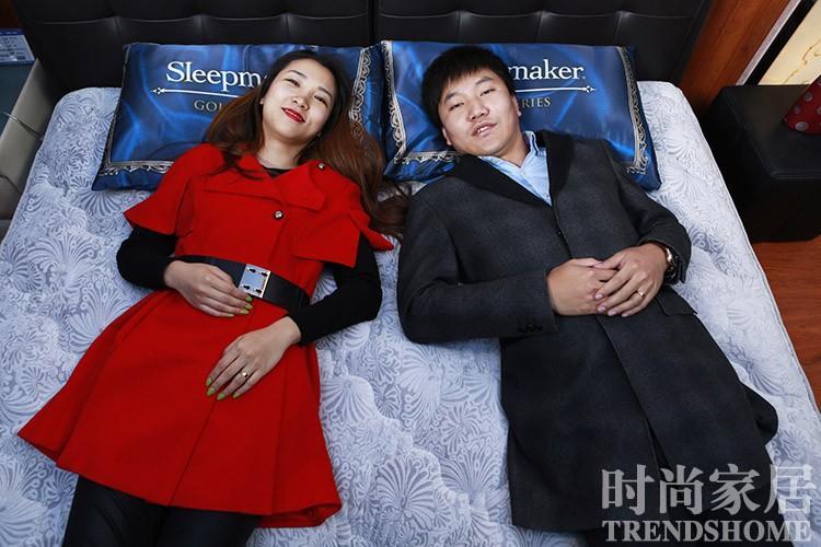 造梦者(Sleepmaker) 造梦者(Sleepmaker)新甄选床垫的左侧稍软,右侧稍硬,试睡员们纷纷跳上去感受不同的软硬度。 董MM:让我摸摸你的脸,胡子好渣手!