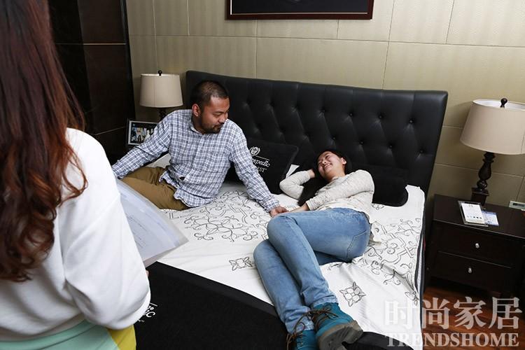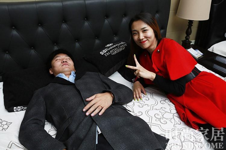 丝涟(Sealy) 两人一起试躺,坐上去很有弹性哇~ 赵GG:懒猪,起床啦!