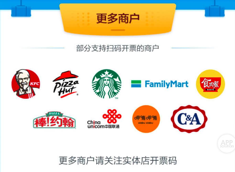 值得一提的是,不是所有的购物小票都能够用支付宝开发票。支付宝也列出了支持扫码*票开**的商户。