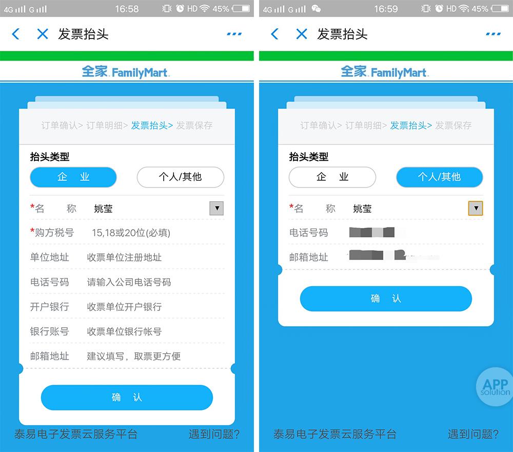 紧接着,选择你的抬头类型,能够选择企业或者个人/其他,然后依次填入名称、税号、地址、电话号码和邮箱等信息。