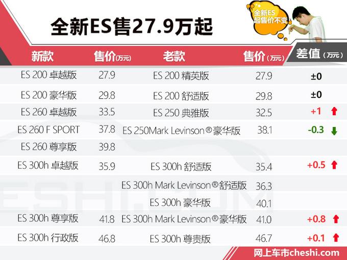 网上车市从雷克萨斯官方获悉,全新ES今日正式开卖,共推出8款配置车型,售价区间为27.9万元-46.8万元,入门版相比老款车型增配还不加价。长久以来,中大型轿车都是国内最大的豪华车细分市场,也是在国人消费者中建立品牌形象的重要切入点,ES作为雷克萨斯旗下的一款中大型轿车,于2006年引入国内销售,并于今年4月开幕的北京车展上,首发了全新一代车型。