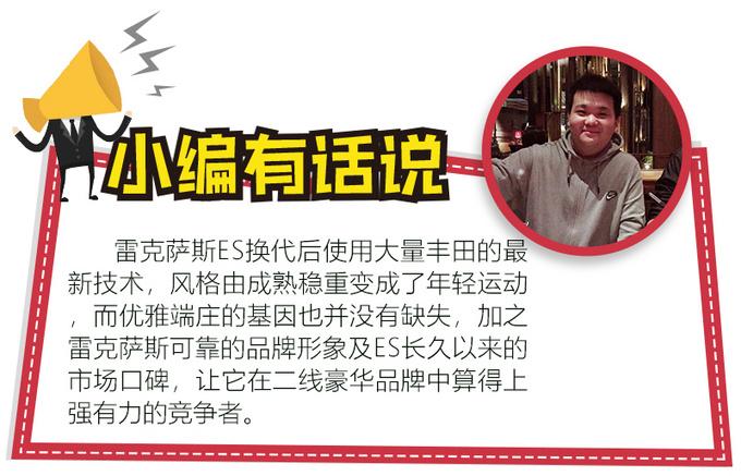 优雅和稳重一直是雷克萨斯固有的产品形象,但在消费市场趋向年轻化发展的大环境下,全新ES进行颠覆性改变,给消费者带来不一样的视觉观感,却依旧能保有雷克萨斯独有的核心特质。自北京车展首发,再到今日公布27.9万元-46.8万元的官方指导价,全新ES都在给消费者带来惊喜。雷克萨斯目前在中国市场的表现已堪称优秀,全新ES的强势加入,势必会将雷克萨斯的市场表现带向一个新的高度。