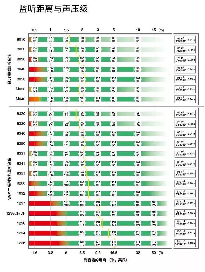 真力建议您通过听音距离和监听声压级来选择合适的监听音箱。选择低音音箱时,要与主音箱相互匹配。假如您需要更详细的参考,能够使用我们提供的线上选择工具,或咨询真力中国及当地经销商。下面的内容将帮助您确定听音距离和理想听音区域。