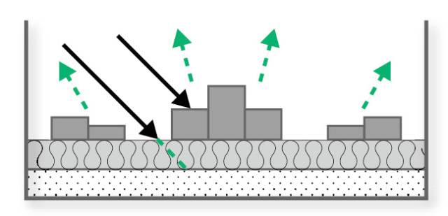 扩散体、书架等不规则表面会扩散声波。扩散角度取决于扩散体的设计。通常,低频声波很难被扩散。
