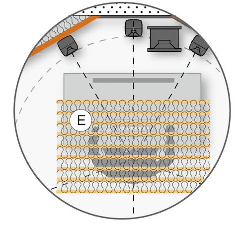 E 在听音区域的天花板上安装吸声材料和扩散体,能够减少来自天花板的反射。