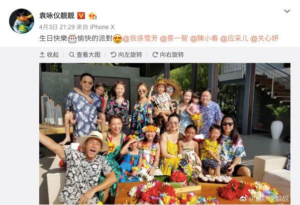 事情是这样嗒:袁咏仪在微博晒出了张自己全家和陈小春全家以及友人们一起度假的照片并配文道:“愉快的派对”。
