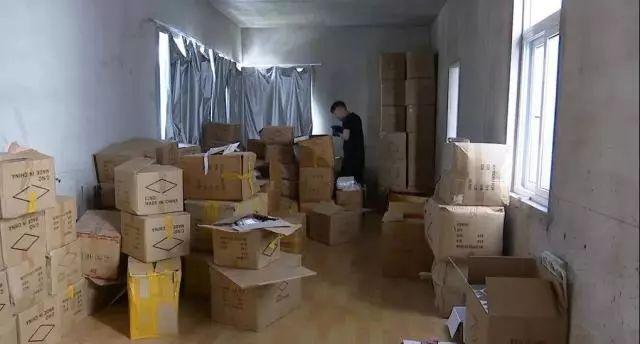 仓库里堆满了假冒劣质化妆品