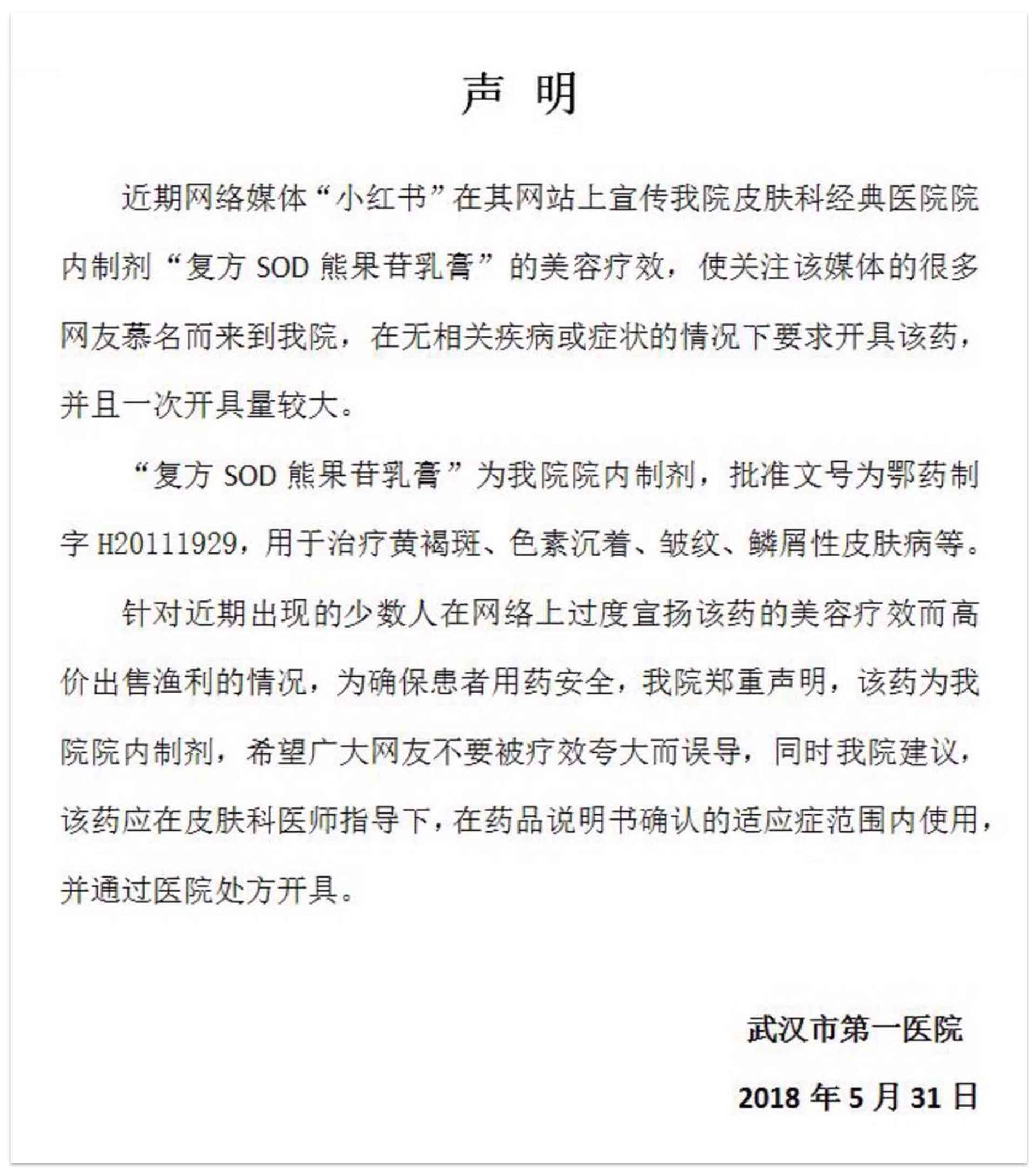 为了确保用药安全,武汉市第一医院就曾发出声明,提倡大家遵循医嘱、谨慎使用。