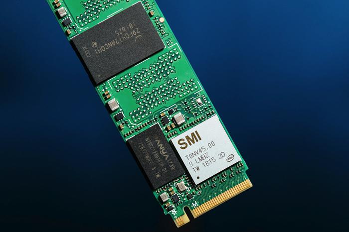 采用Silicon Motion SM2263主控,256MB NANYA DDR3L内存,两颗Intel的64层QLC 3D NAND顆粒。整个M.2 SSD采用单面设计,正面有两个NAND芯片空焊位置,加上了就能够构成2TB容量。